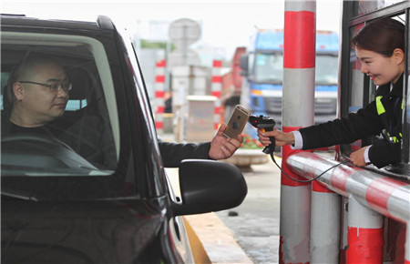 “移动支付也给我们工作带来很多方便,省了核对现金数额、辨别钱币真伪、找零的工作量,操作时间缩短,车辆通行速度自然也快了很多。”当班收费班长马德侦介绍,而且付费扫码器的有效距离能够达到1.5米,司乘人员坐在车内就能轻松完成扫码支付,既方便又快捷。“对于较大的货车,我们也可以使用手动扫描仪进行操作。”