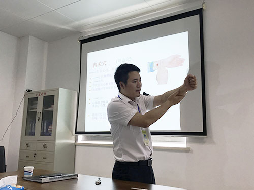 图为授课现场 讲座中,老师通过现场讲解、幻灯片、实际演练等多种方式,对现场紧急救护CPR人工呼吸等知识和技能进行了生动详实地讲解,有利于员工在突发事件发生后第一时间对伤病员进行及时、正确、有效的现场救护,把伤害降到最低。向老师强调,一个人最重要的是健康,并梳理出我国10大致命疾病,详细介绍慢性疾病的临床症状和护理,高血压发病机理、脑血管爆裂、脑中风等疾病。与了解疾病相比,对疾病的防治显得更为重要,他特别针对员工久坐长站等情况,讲解了肩周炎、颈椎病等办公室常见病的预防及改善方法,提醒大家在紧张的工作中也不要忽视自身的健康。 此次培训,提高了员工在突发事故中的自救、互救意识和能力,并使参训学员初步掌握了现场急救基本知识和技能。 郑霞霞