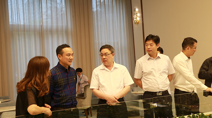 图为陈文波对照图纸了解楼盘情况 在销售展厅楼盘沙盘前,陈文波听取了高速房产(集团)公司负责人关于玖玺逸墅项目销售计划、认筹客户等情况汇报。他对前期房产公司的辛苦付出给予充分肯定,要求大家认真服务好每一个来访客户,彰显出国企品质,全力做好销售工作。 当天,销售展厅楼内,陆陆续续有客户进出,“我很早就看中这个楼盘了,不仅位置好,而且采光好、通风好,居住在这里一定非常舒服。”一名准客户张女士夸赞道,今天她特意前来交付认筹金。  图为客户在叠墅沙盘前参观