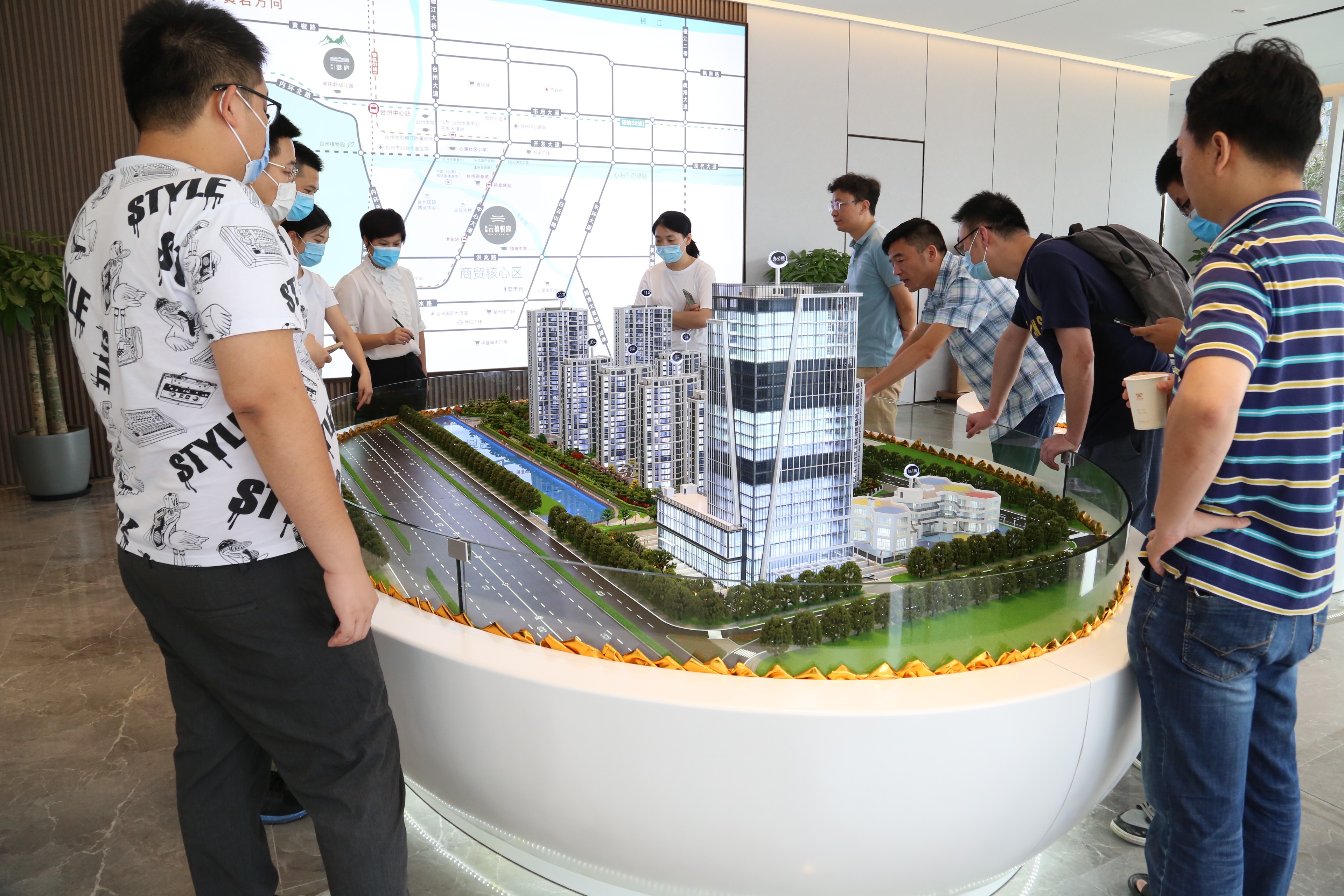 图为各部门联合校准验收 为确保沙盘的精准度,最大程度地呈现项目效果,销售部立即召集前期部、工程部等相关人员对沙盘比例、户型、外立面设计、绿化景观设计等进行一一核准、校对。 为早日开展项目宣传工作,近两个月来,销售部和全公司上下坚定信念,分工明确,盯好关键环节,协同奋战,目前,城市展厅办公区域已完成装修、搬迁,展厅内装、软装布置已收尾验收,营销物料及道具也制作完成并陆续进场,云禧悦府项目营销策划代理服务招标工作已完成,云庐项目营销策划代理服务招标工作也于8月20日开标,展厅开放前的各项准备工作接近尾声,预计将于9月正式对外开放。 卢丹丽